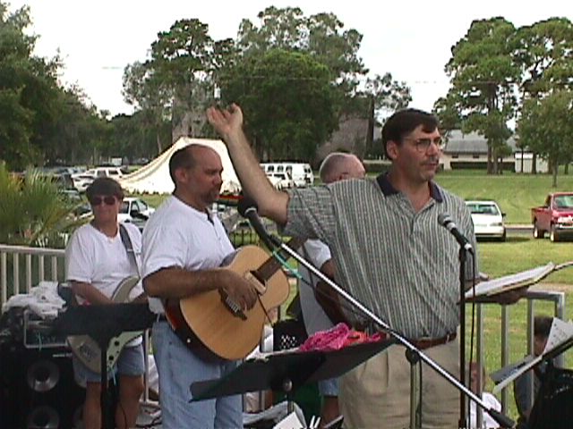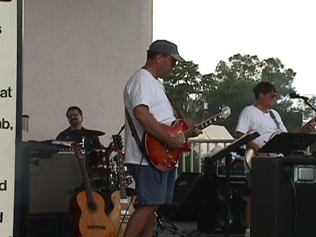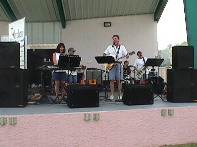 Annual Episcopal Deanery PicnicD'Band and the St. Giles' Praise Band drew a crowd of over 400 people that afternoon. The weather was perfect, the setting wonderful, the food plentiful, and the audience was great! D'Band (Carol, Jon, Mike, Ann, & Peter Malinchock on the drums) played alternately with the St. Giles' Praise Band The St. Giles' band consisted of Carol, Jon, Peter Malinchock, Sandy Sandmeyer, Bill Doyle, and Carol's Dad, Jim Ponder.