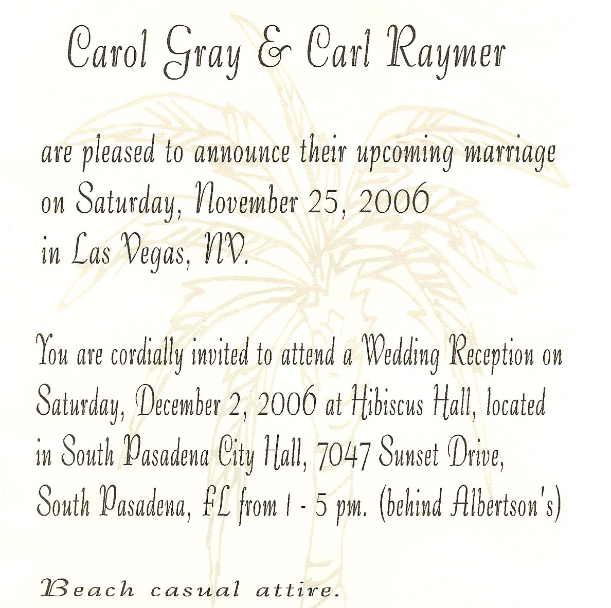Carol Gray & Carl Raymer Wedding Reception Party