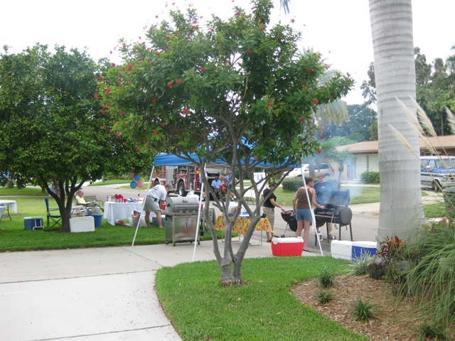 Setting up for the block party. |